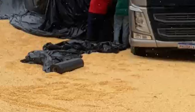 Ainda segundo o condutor, a pista estava molhada no momento do acidente, o que fez a carreta deslizar antes de tombar. Parte da carga de milho se espalhou pela via, aumentando a dificuldade para o tráfego de veículos.