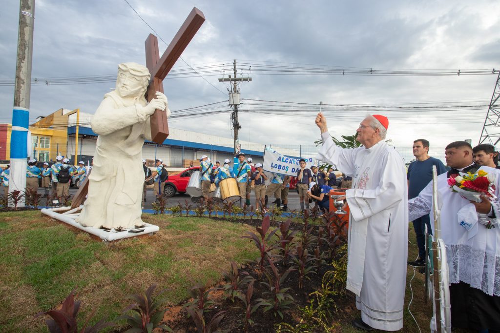 Manaus (AM) – A rotatória do Colônia Antônio Aleixo, na zona Leste de Manaus, ganhou neste domingo (30/11) um novo ponto de referência: a Cruz Gloriosa, monumento que marca os 75 anos da Paróquia Nossa Senhora das Graças e integra o pacote de revitalização urbana conduzido pela Prefeitura de Manaus, por meio da Semulsp, em parceria com a Arquidiocese de Manaus.
