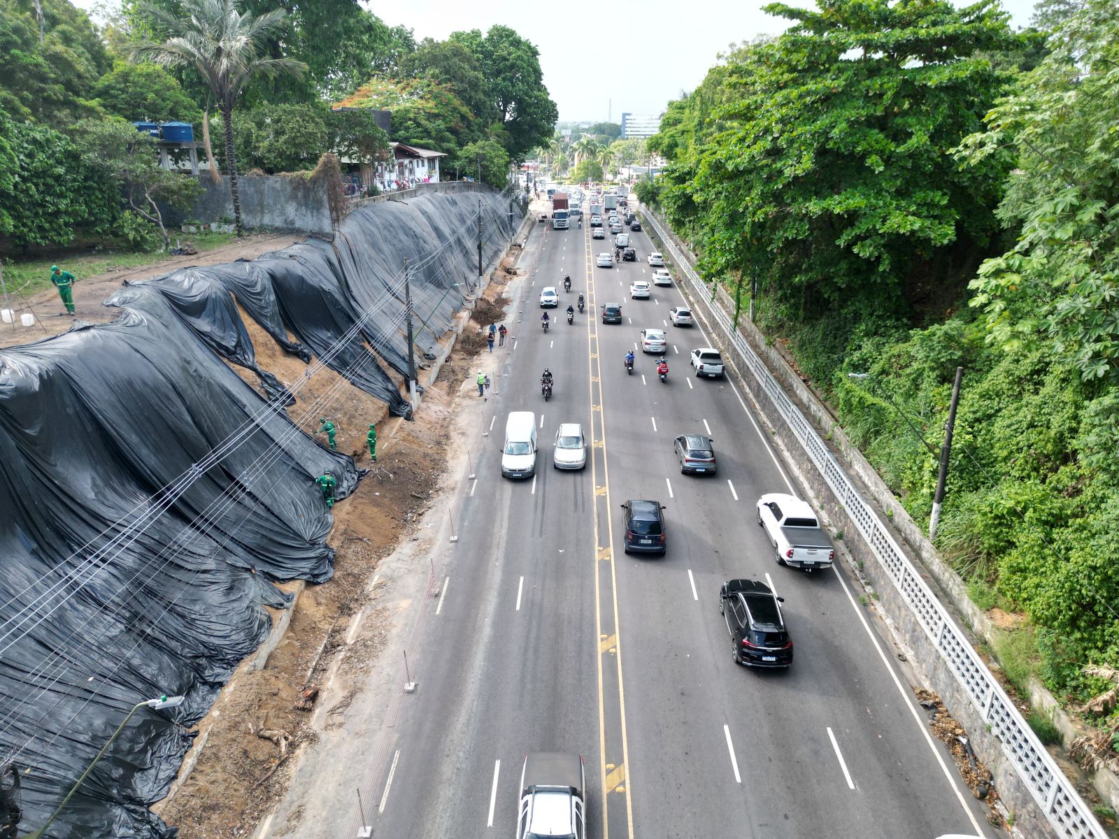 Manaus (AM) – A Avenida Mário Ypiranga Monteiro, no Parque 10, Zona Centro-Sul de Manaus, passa por uma nova etapa de contenção após anos de desgaste no talude que margeia a via.
