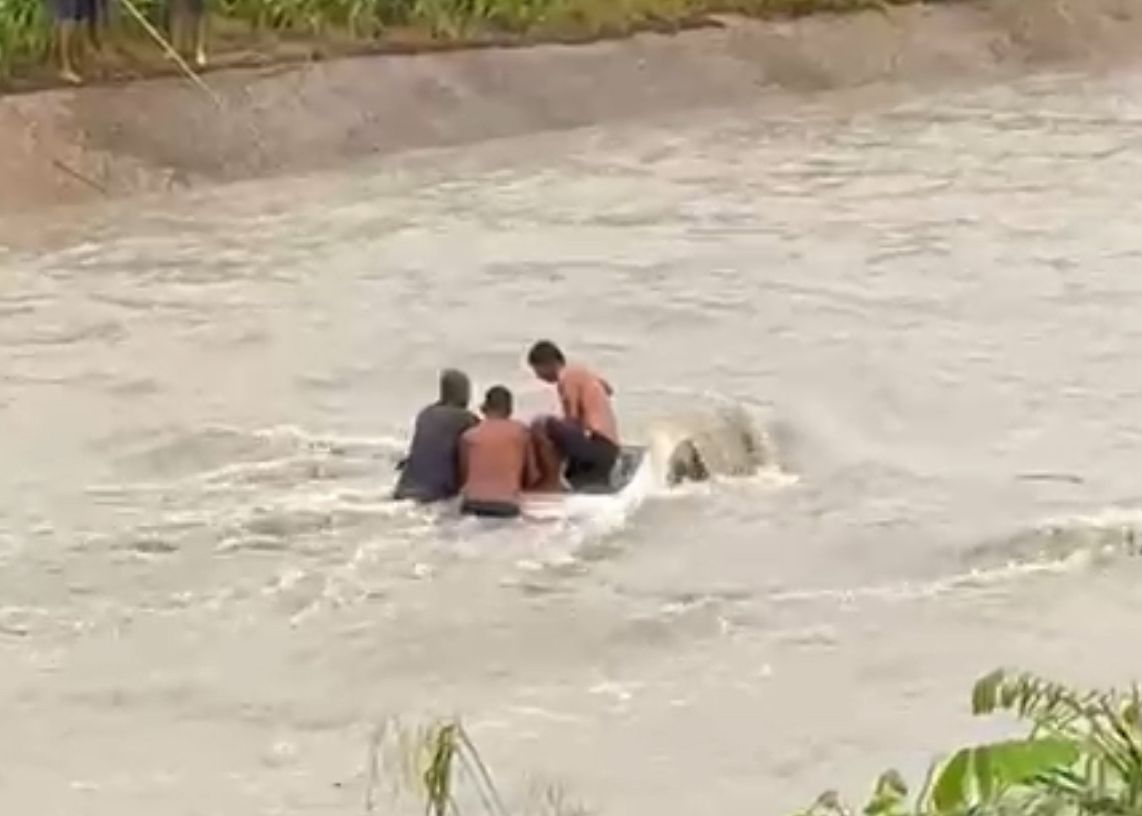 Durante o resgate, moradores montaram uma linha de apoio com cabos, ajudando a conter o movimento do carro. Com o suporte da população, o jovem foi colocado em uma cadeirinha de resgate e retirado da água com segurança.