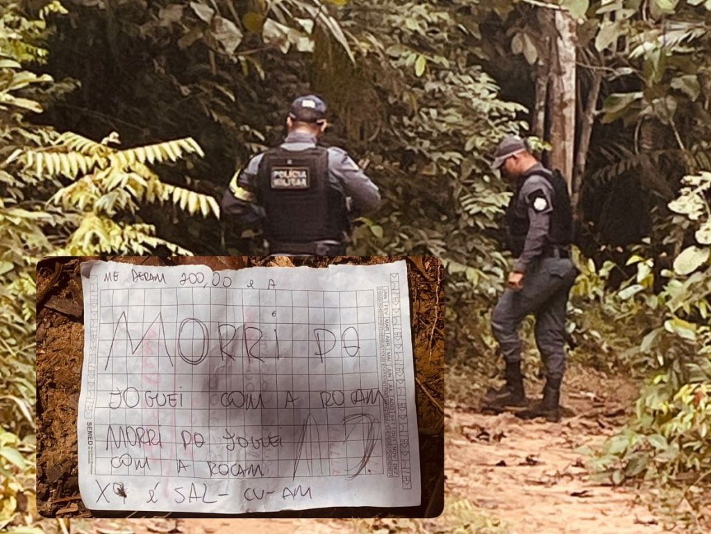 Ao lado do corpo, os policiais encontraram um bilhete supostamente assinado pela facção criminosa Comando Vermelho. No texto, o grupo afirma que o homem teria sido morto por ser “x-9” e por “jogar” com a Ronda Ostensiva Cândido Mariano (Rocam).