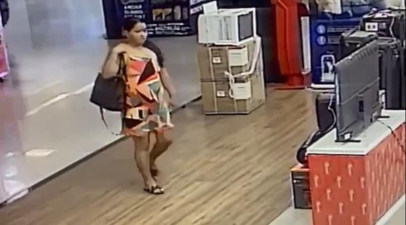 Manaus (AM) – A Polícia Civil do Amazonas (PC-AM) divulgou na noite desta quinta-feira (29) imagens de uma mulher, não identificada, pelo furto de uma caixa de som da marca JBL, de uma loja de departamento localizada em um shopping center na zona leste de Manaus.